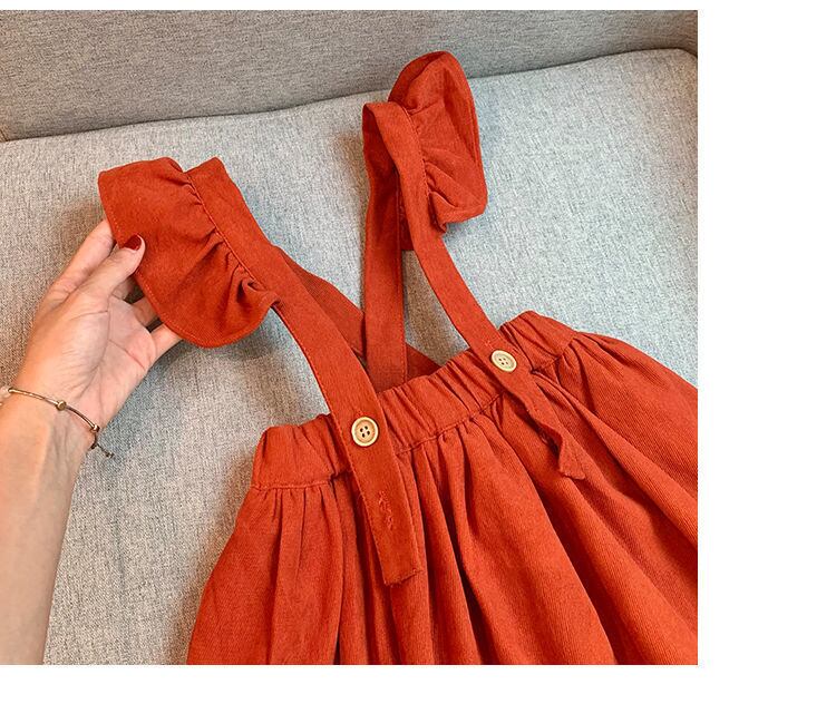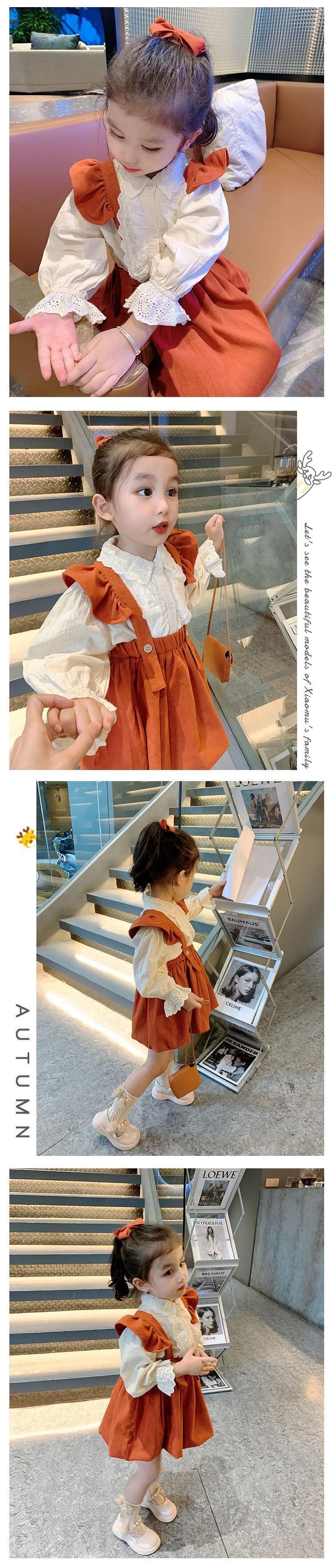 新作 2〜8歳の女の子セット長袖フリルオーバーオールダンガリードレス白いシャツ2021かわいい衣装キッズガールズ服