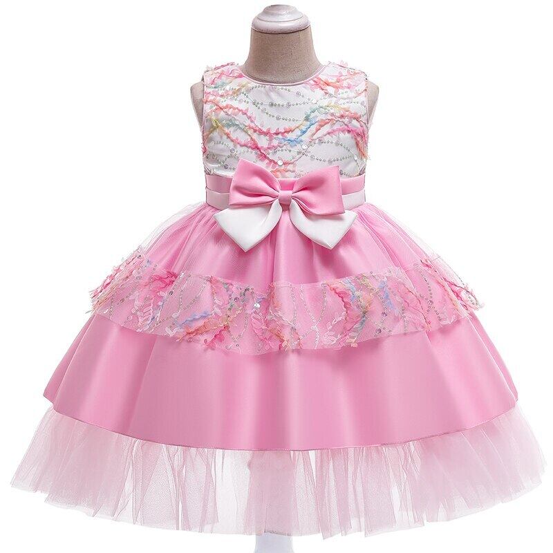 新作 2021年夏のノースリーブドレスボウノットキッズドレス女の子の服子供パーティードレス女の子フラワーVestidos