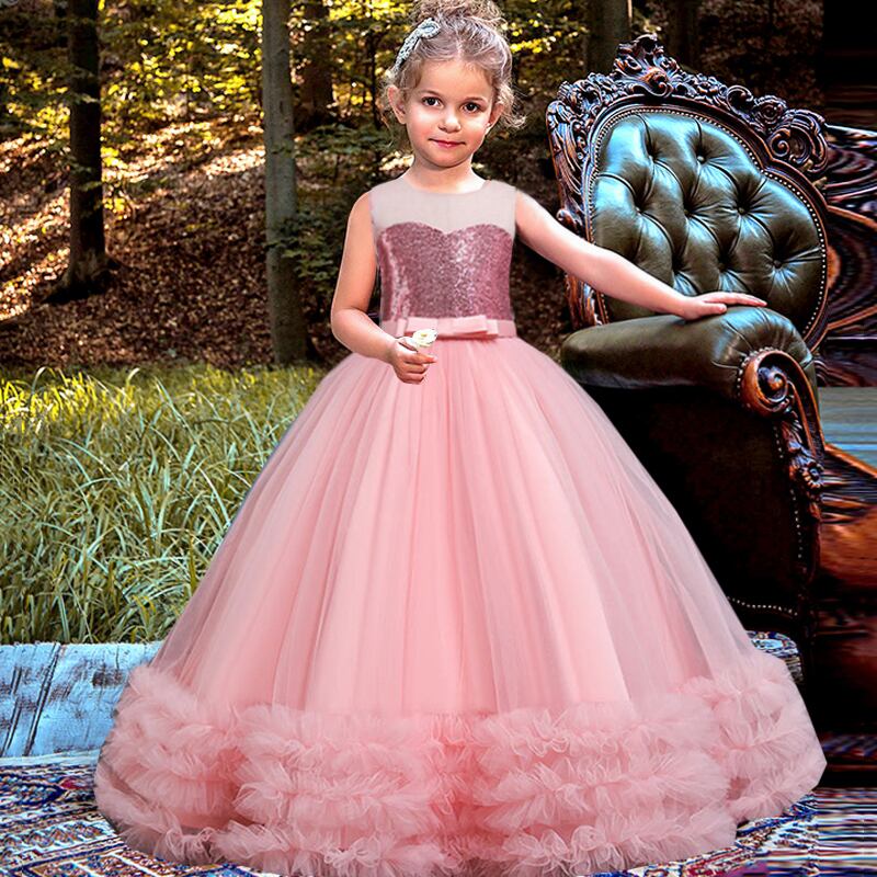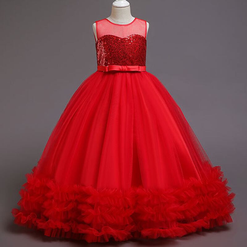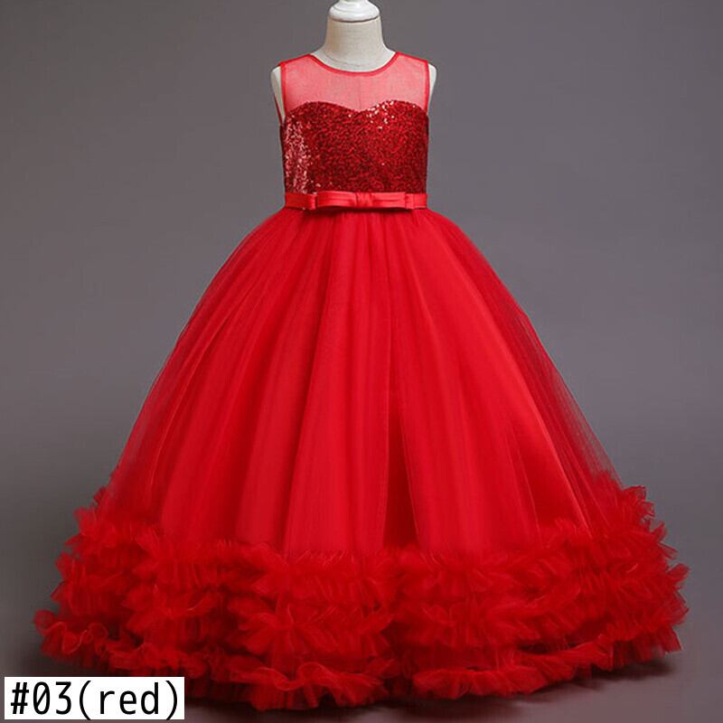 新作 -エンドガールドレススパンコールロングマル初聖体子供パーティーキッズドレスガールウェディングドレス