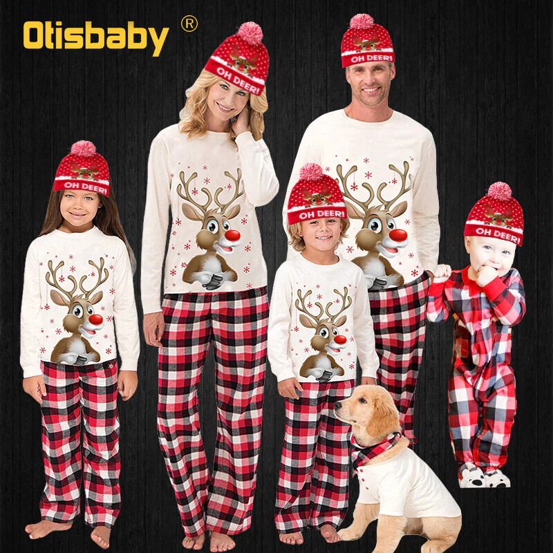 新作 父母子供赤ちゃん女の子男の子家族マッチングクリスマスパジャマと帽子男性女性子供家族セット