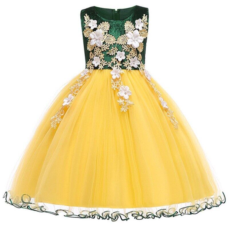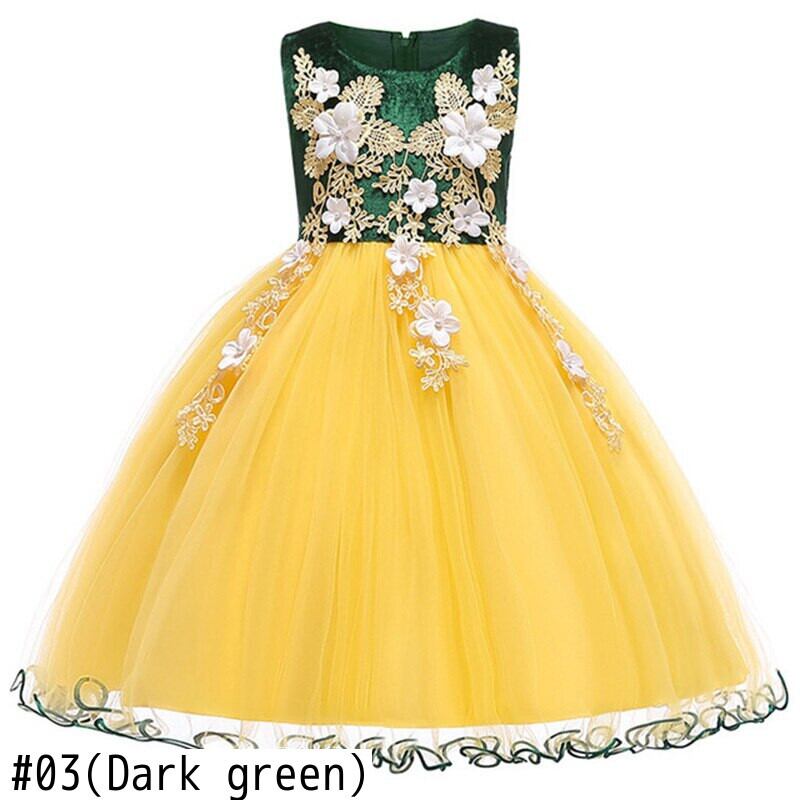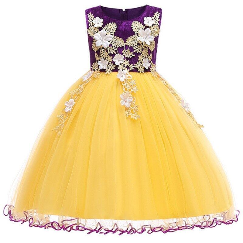 新作 2019夏の子供服のドレスコスチューム子供の誕生日の王女のドレスエレガントなパーティーの結婚式の服3-10年L5095