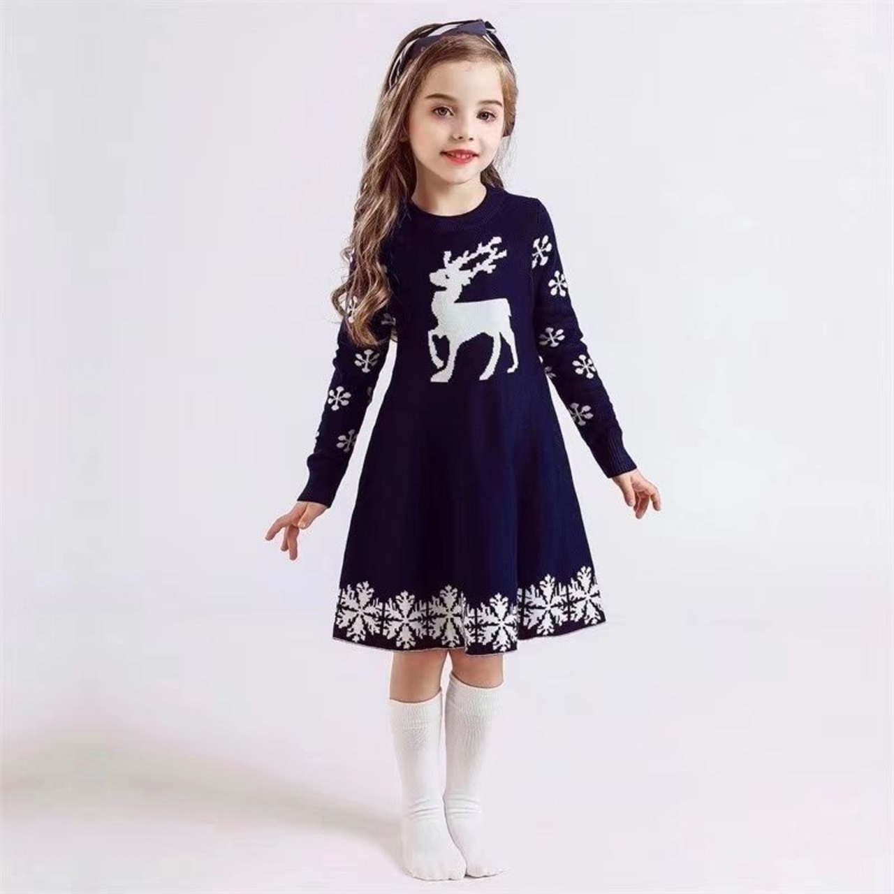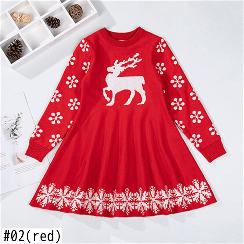 新作 子供女の子の服クリスマス冬ニットティーンクリスマス女の子の長袖セータードレス56 7 8 9 10 11 12 1314年