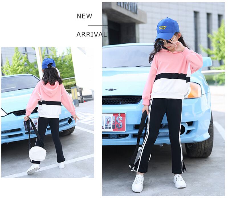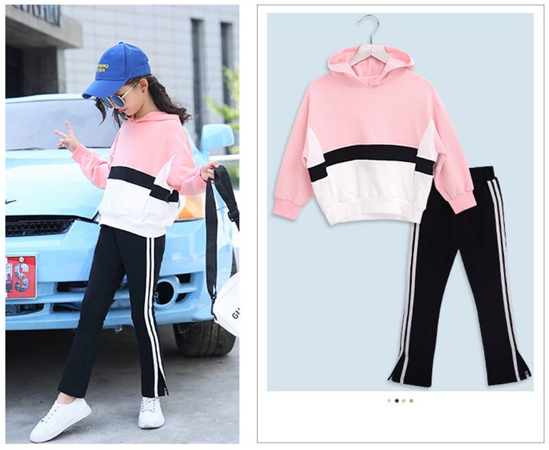 新作 女の子セット春服子供ティーンスポーツスウェットシャツスーツパーカー8101112歳