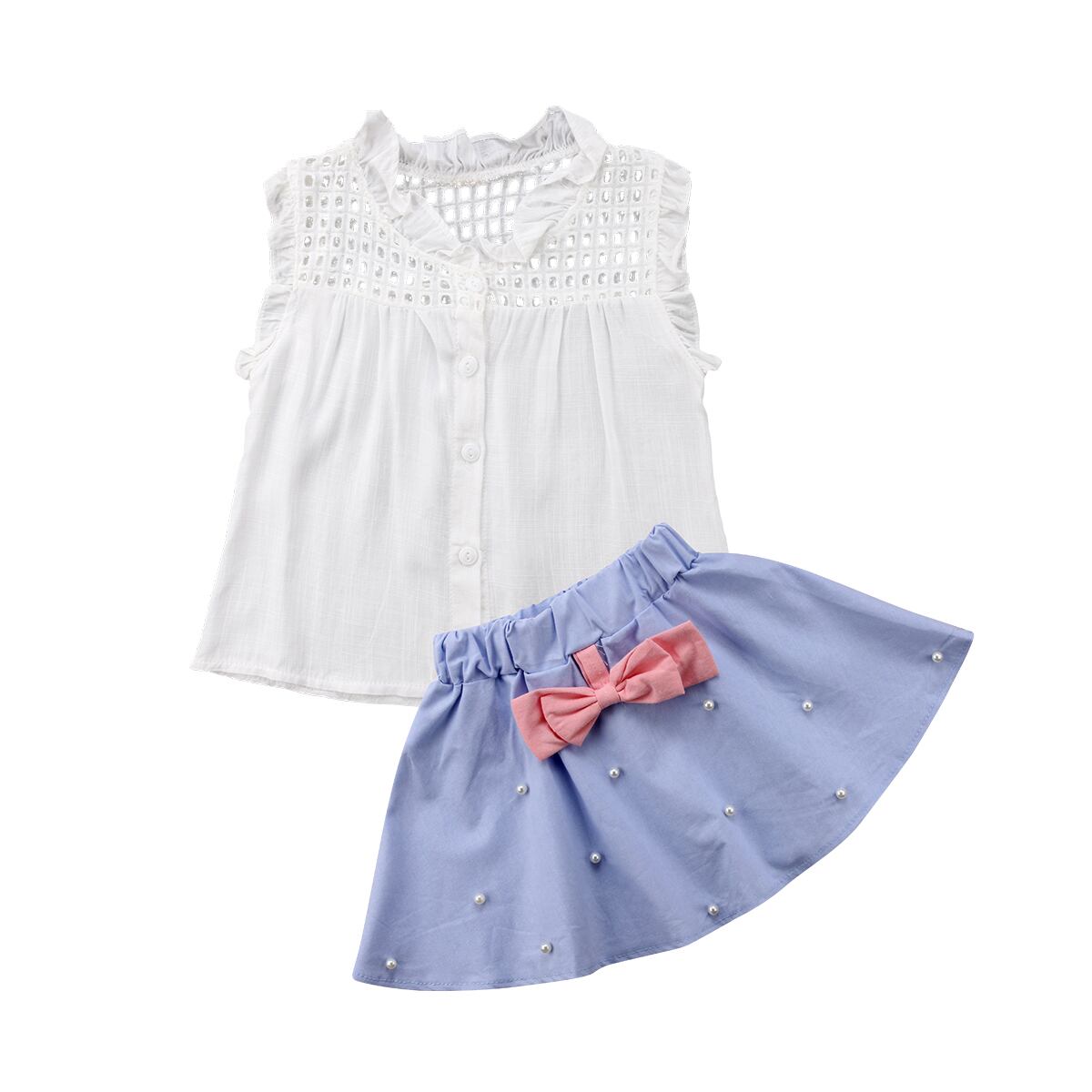 新作 Pudcocoガールズセット2019Summer GirlsClothesノースリーブTシャツ+ボウノットスキット2個キッズセット2-7Y