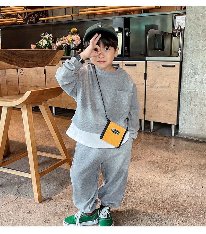 新作 子供男の子セット幼児固体衣装子供男の子ジョガートラックスーツスポーツウェアスポーツスーツ23 4 5 6 7 810年