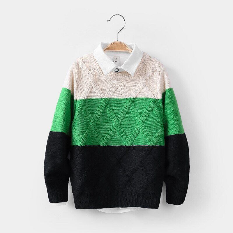 新作 ボーイズタートルネックセーターニット2021秋冬子供用長袖カーディガンベベキッズニットパッチワークセーター8年