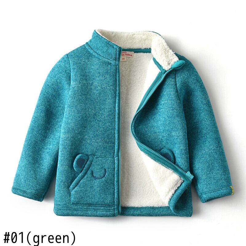 新作 ベビージャケット春秋男の子女の子無地フリースジャケットジッパーアウターポケット厚く暖かい冬服