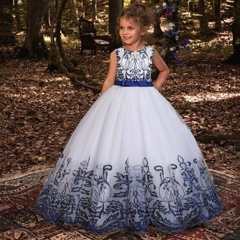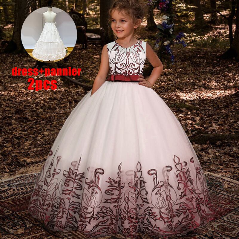 新作 キッズガールズロングレースフラワーパーティーエレガントな夜会服ウエディングドレスキッズガールウェディングチルドレンファーストコミュニオンドレス