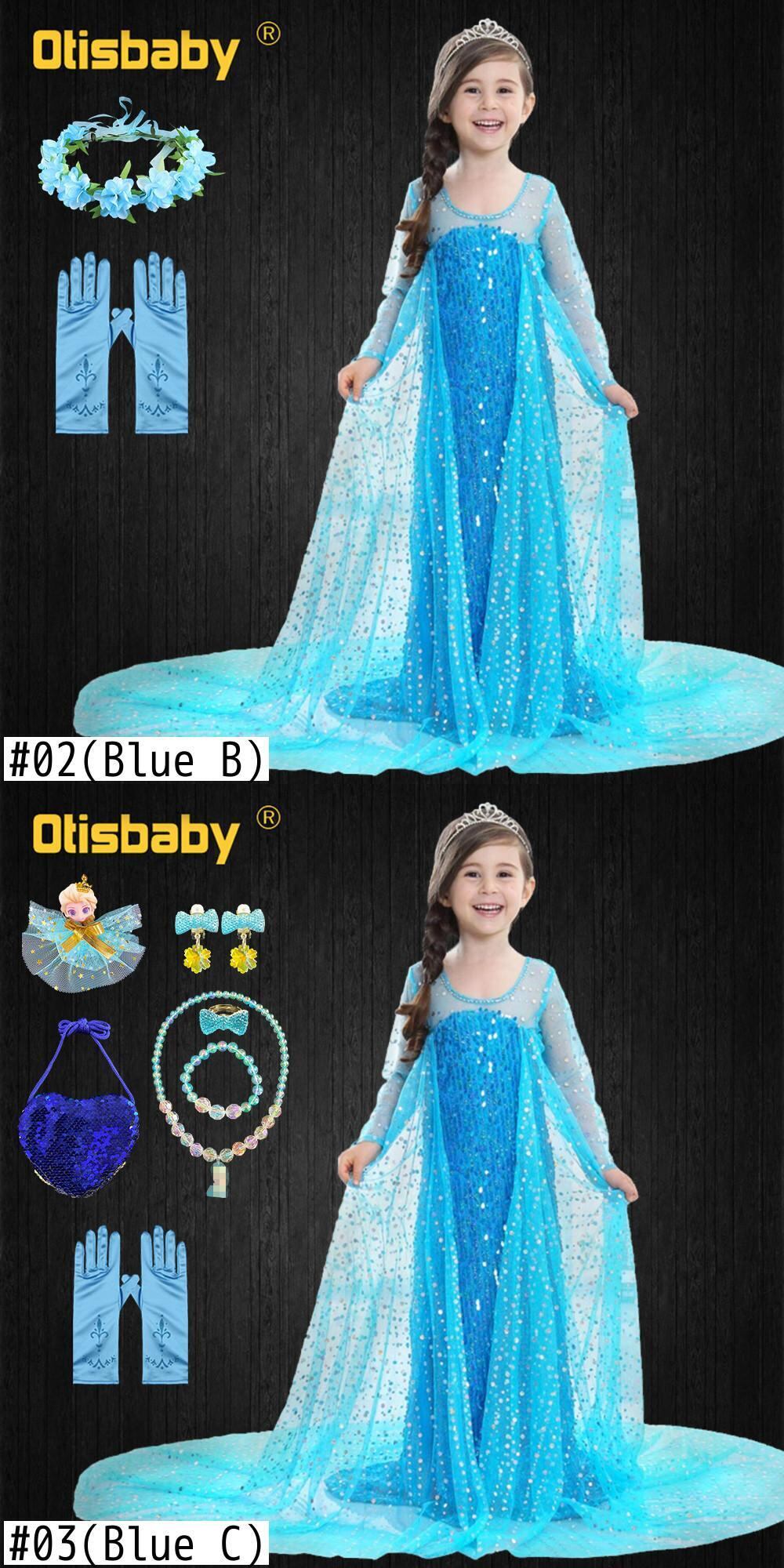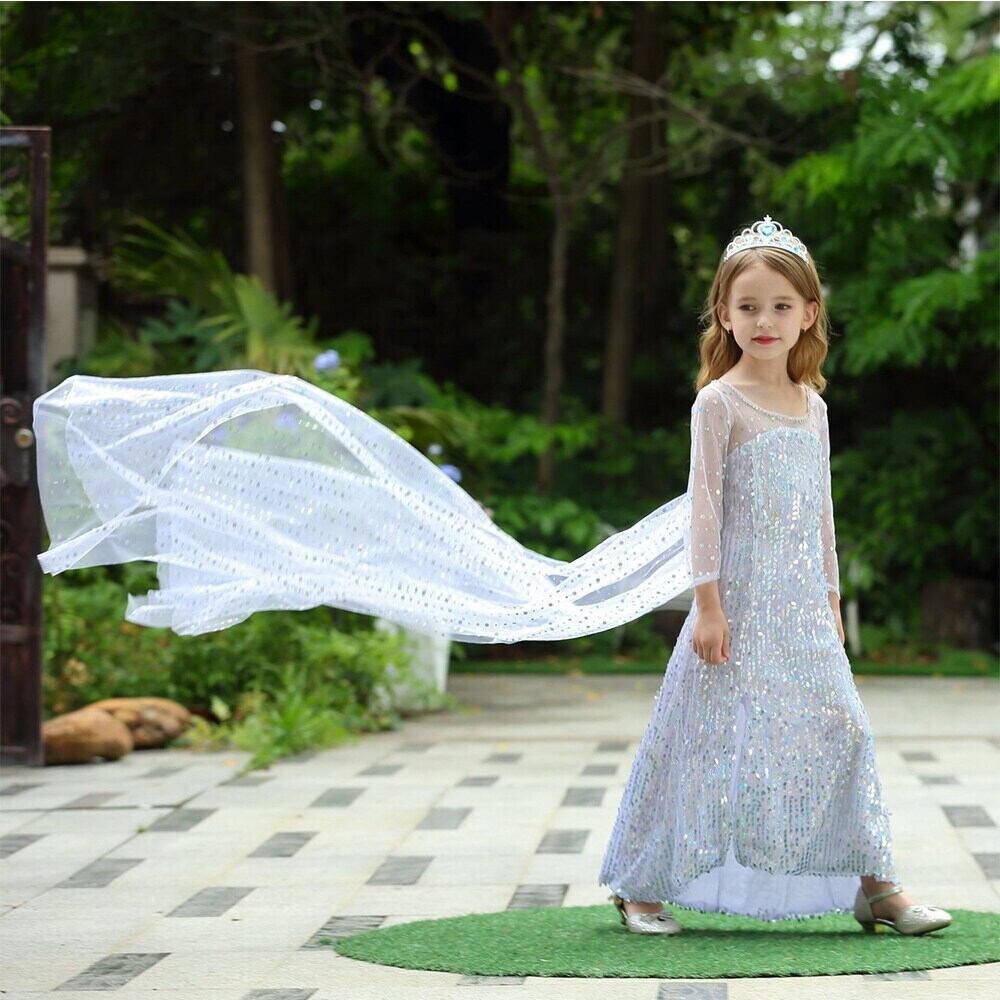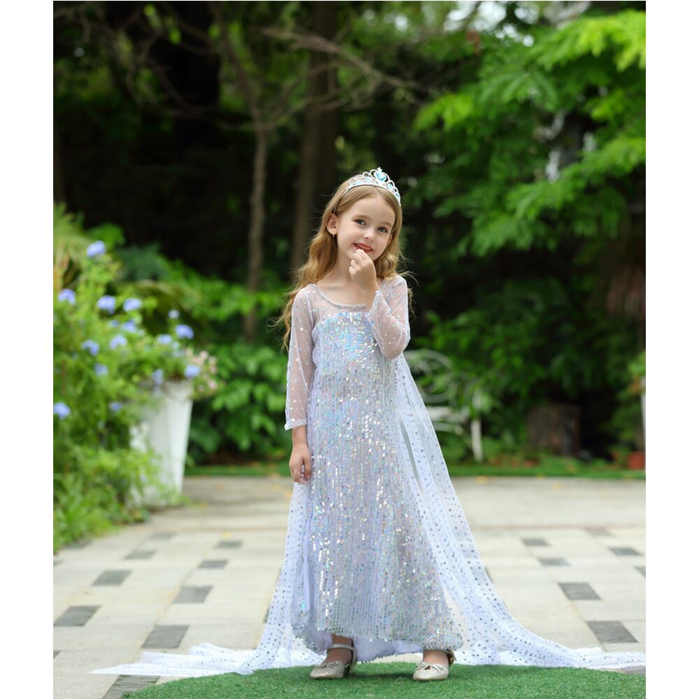 新作 誕生日パーティーの女の子Elsaドレス夏の幼児の女の子長袖の青いドレスロングテールスパンコールボールガウン