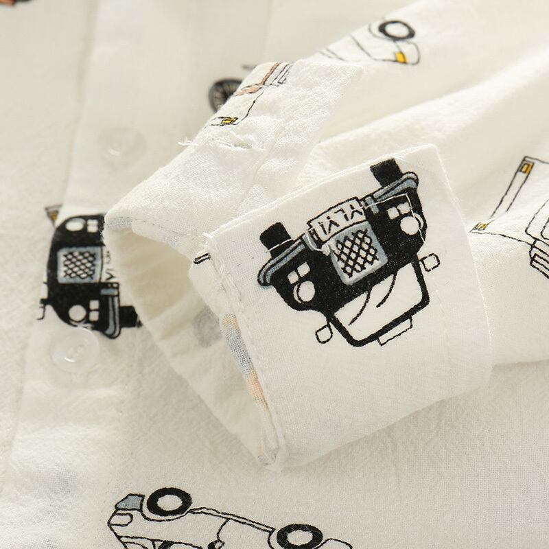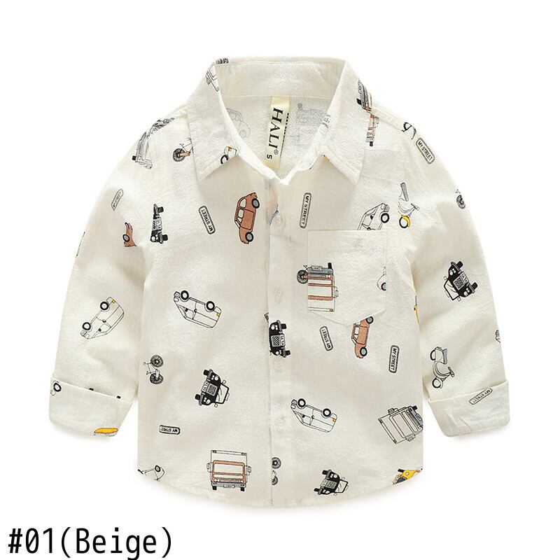 新作 男の子シャツ2021子供漫画プリントトップスコットンホワイトブラウス長袖幼児子供服10代のブラウス