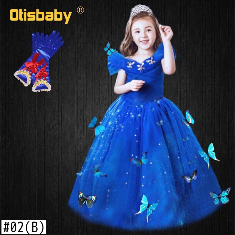 新作 バタフライファンシーガールブルーシンデレライブニングチュールロングドレスガールズチュチュパーティーナイトカーニバルキッズ