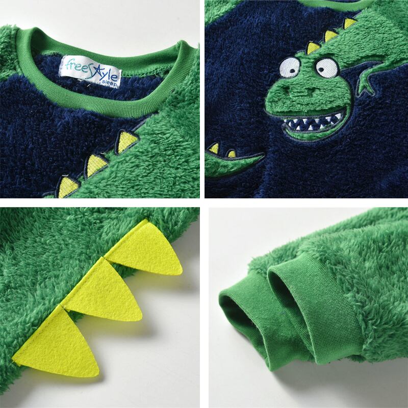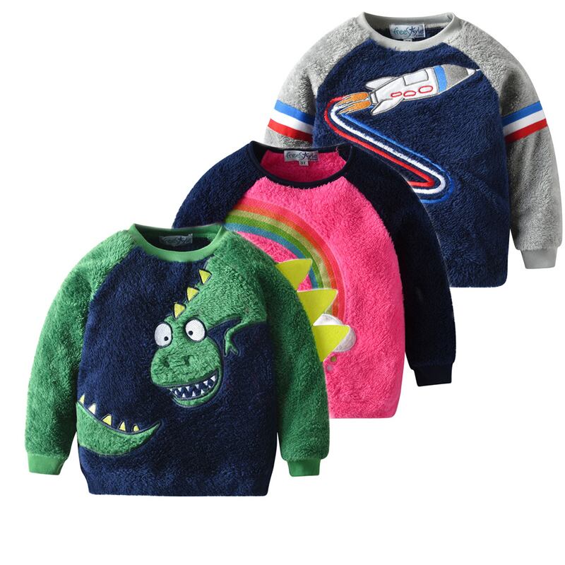 新作 ガールズボーイズTシャツ秋冬服子供用暖かい恐竜漫画長袖トップフリース漫画スウェットシャツキッズアウター
