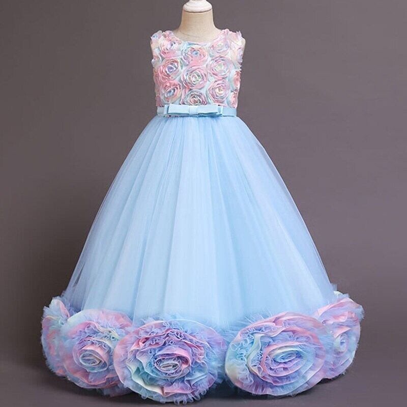 新作 -エンドガールドレス花びらロングマル初聖体子供パーティーキッズドレス女の子結婚式の誕生日ドレス