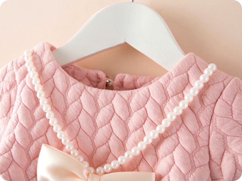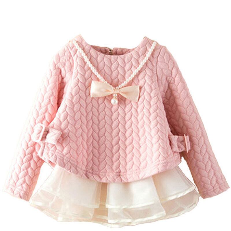 新作 秋のキッズドレスガールズロングスリーブボウチルドレンパーティーパーマメッシュドレスキッズチルドレンガールズウォームソリッドドレス