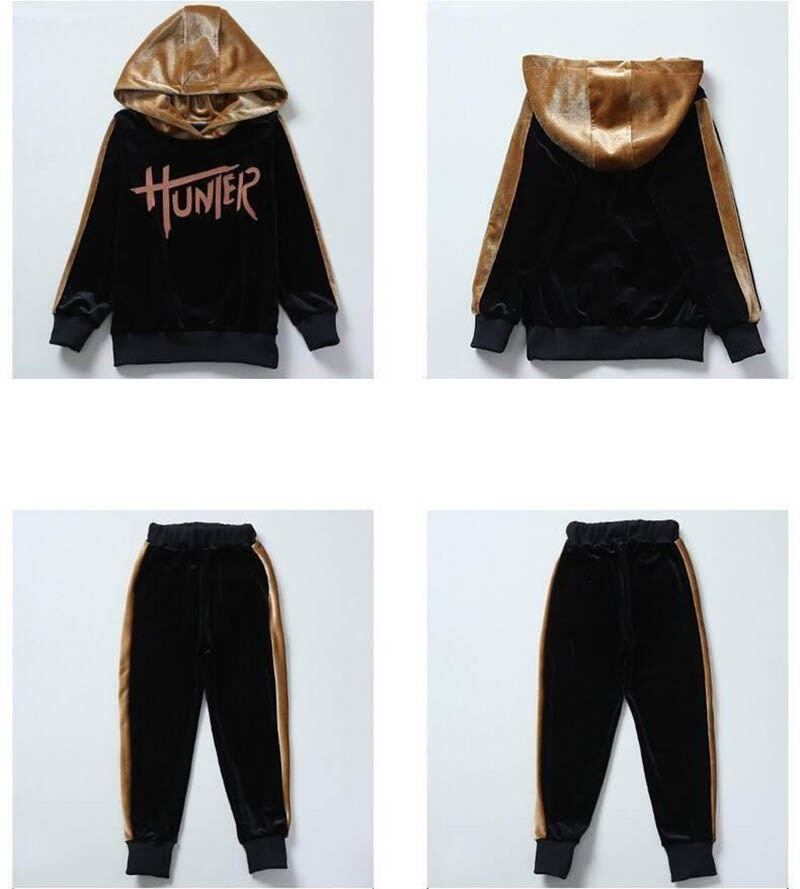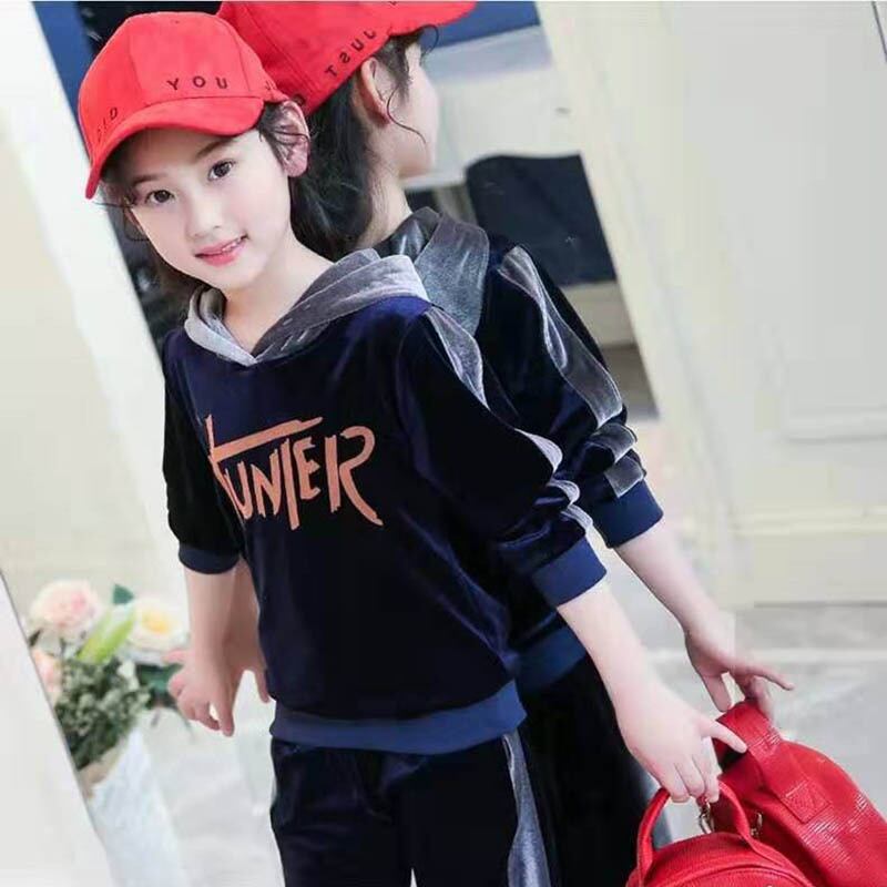 新作 子供のスポーツ服秋冬暖かい十代の若者たち女の子スウェットシャツパンツスーツキッズフードベロアトラックスーツセット