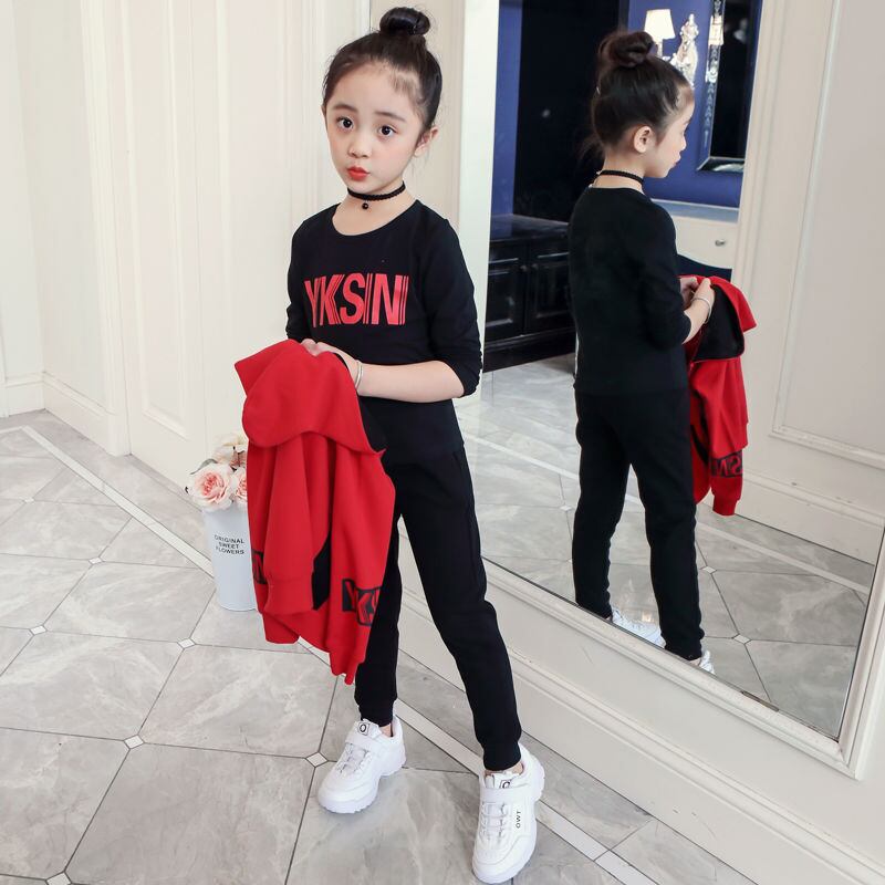 新作 3個セット秋の女の子のスウェットシャツパンツ綿の服フード付きキッズスポーツトラックスーツ810歳の子供セット