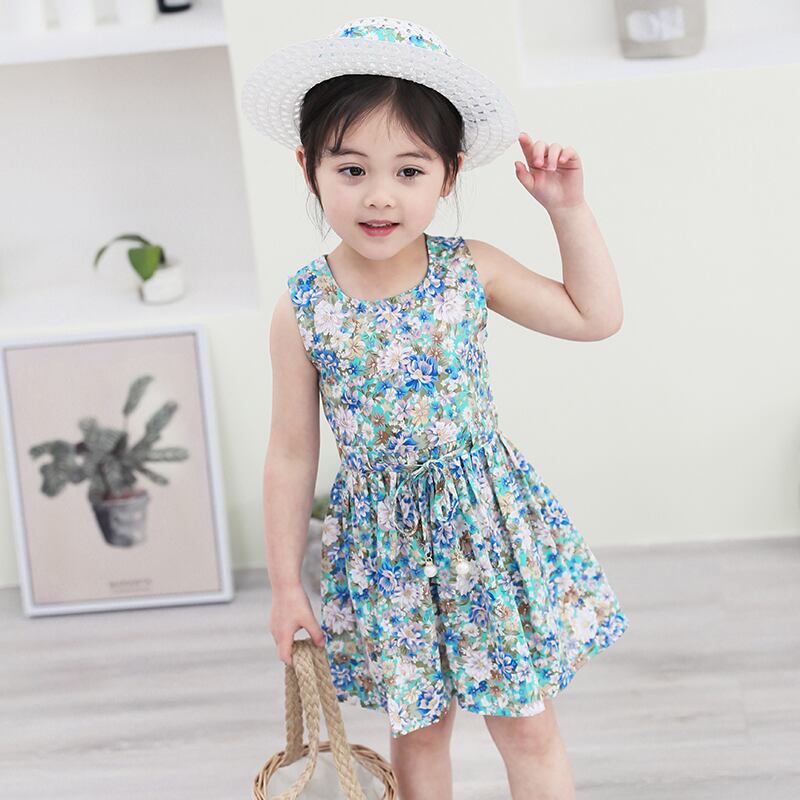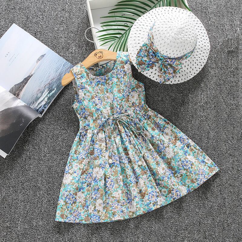 新作 2個/セットガールドレスベビーキッズビーチチュニックキッズドレスハットガールズ洋服パーティーフローラルドレスノースリーブ