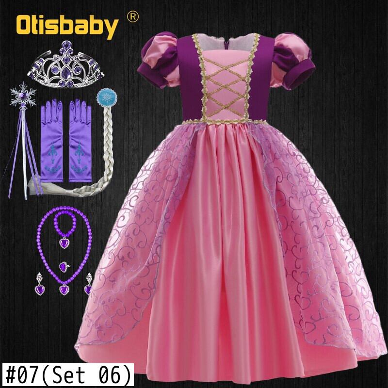 新作 新しいクリスマスサマードレスガールもつれたラプンツェルシェイン子供服コスプレソフィアパーティー夜会服ドレスウィッグアクセサリー