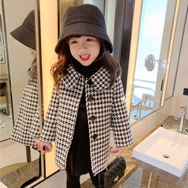 新作 冬の女の子ウールジャケットキッズチェック柄厚手のコート子供秋の服暖かいキッズガールズアウターロングジャケットパーカー