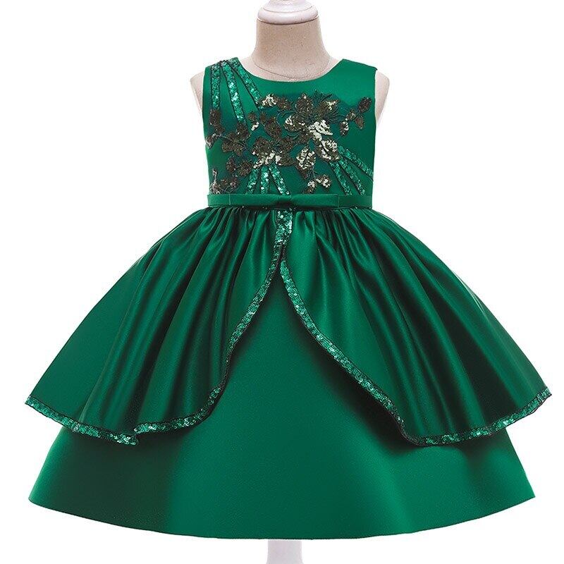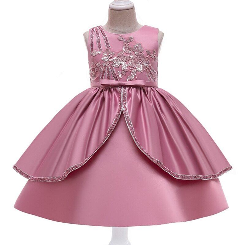 新作 2021ページェントイブニングドレスキッズウェディングドレス子供スパンコールパーティードレスガール幼児Vestidoノースリーブサテン
