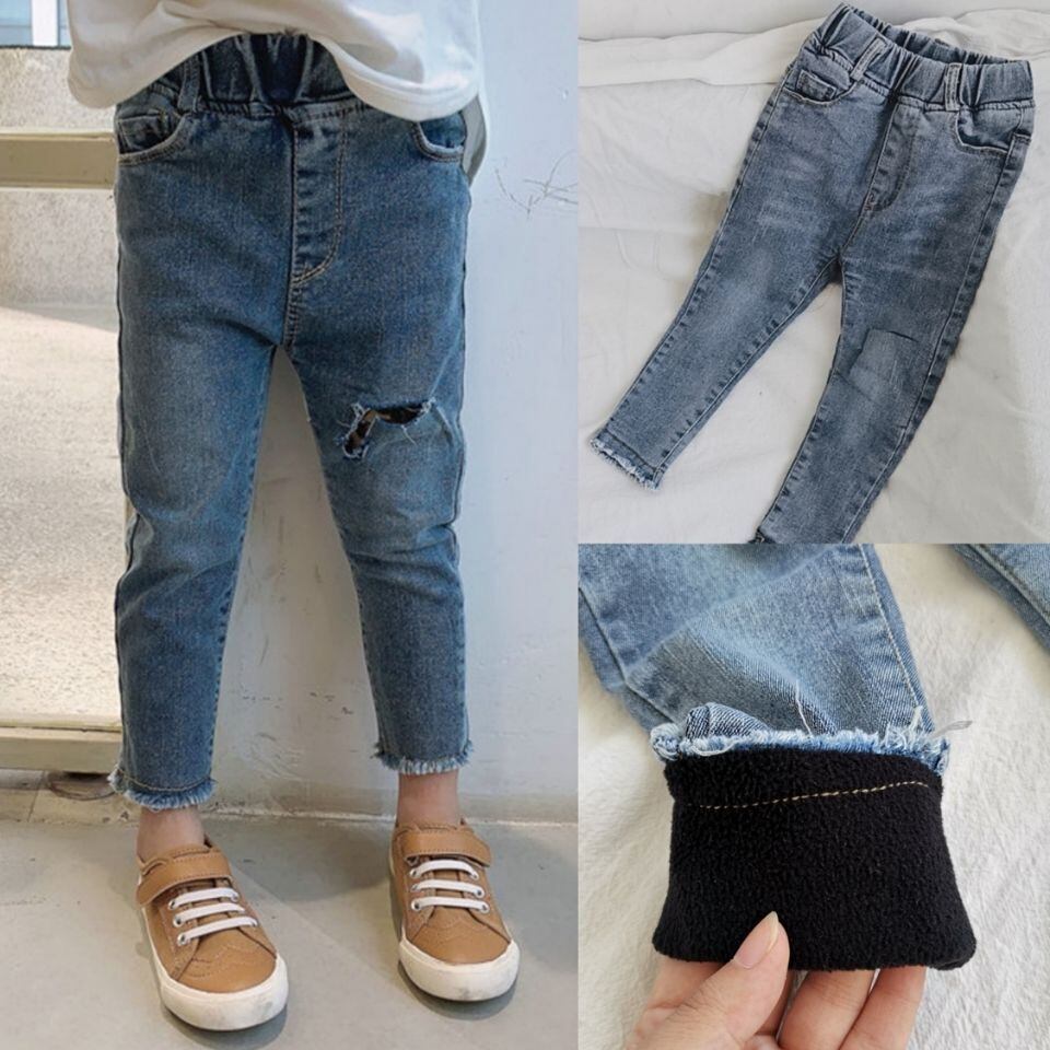 新作 Girl's Fleece Jeans 2020 Spring Baby Girl Ripped Jeans Hole Chirldren Toddler Denim Trousers 2 3 4 5 6 78年