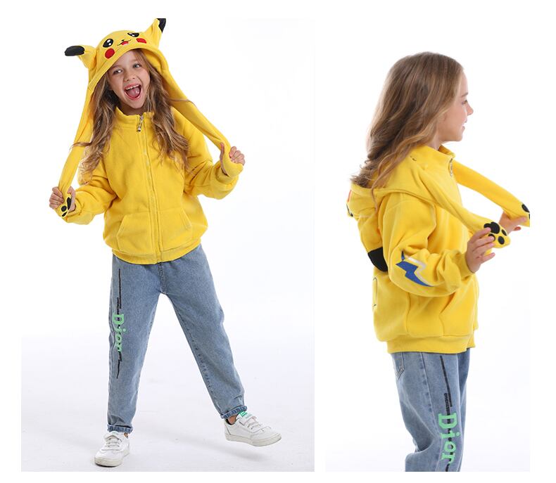 新作 ムービングイヤーフード付きベビーガールズジャケット2021秋冬幼児漫画コートリトルガールズアウトウェア衣装23 4 5 6 78年
