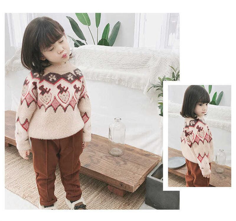新作 女の子の長袖セーター冬のクリスマスエルク赤ちゃん小さな女の子ニットウールパッチワーク子供女の子暖かいセーター