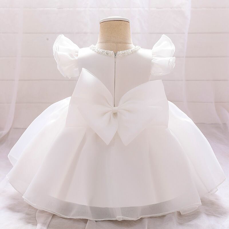 新作 2021ピンククリッドドレスビーディングファーストバースデードレスベビーガールセレモニーボールガウンボウドレスパーティードレスVestidos