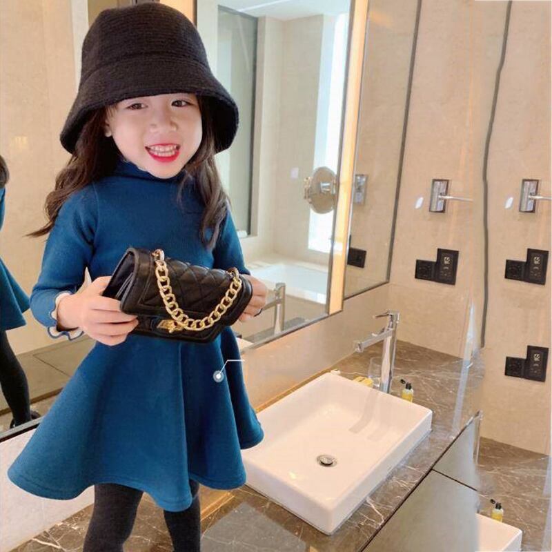 新作 冬の幼児の女の赤ちゃんのドレス子供服幼児の女の子の子供ニットフリースタートルネックセータードレスパーティー服