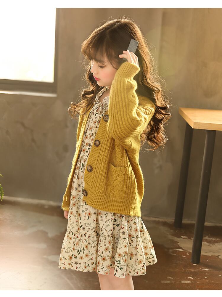 新作 キッズセーター秋ソリッドガールズカーディガンニットウール子供女の子服トップスカラーイエロー子供女の子暖かい冬のセーター