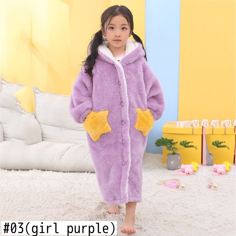 新作 キッズフランネルバスローブシャワーガールコーラルフリースパジャマパジャマベビーボーイ冬フード付きタオルローブティーンパジャマ暖かいナイトガウン