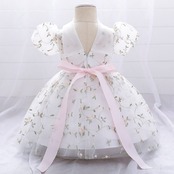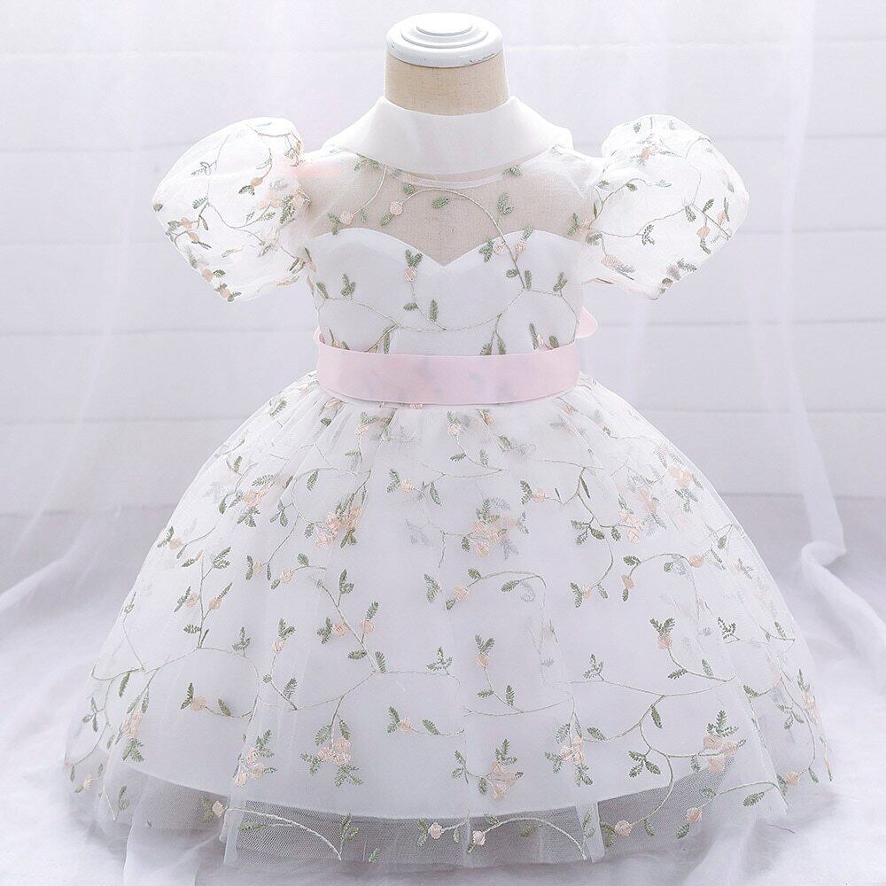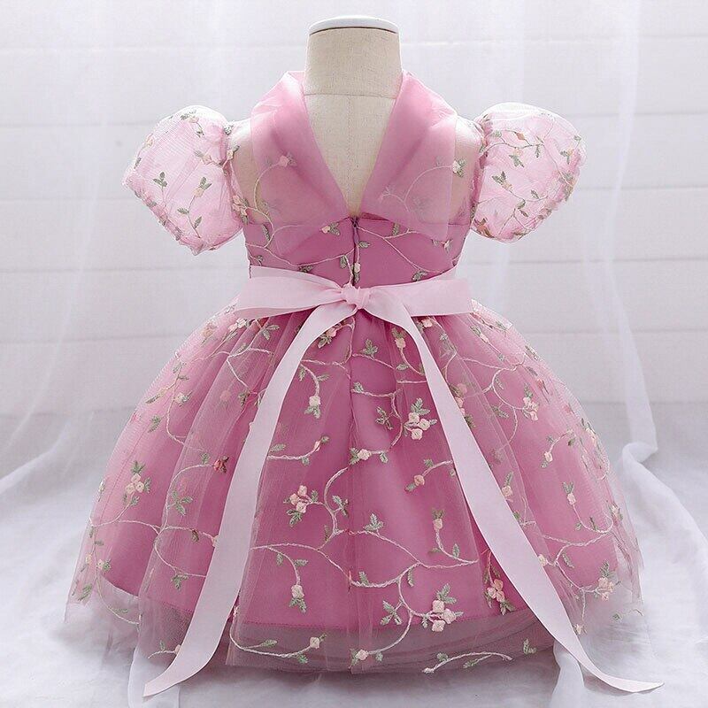 新作 夏の女の赤ちゃんの誕生日ドレスレースふわふわの糸フラワーガールの子ドレスパーティー結婚式のバプテスマのドレスVestidos