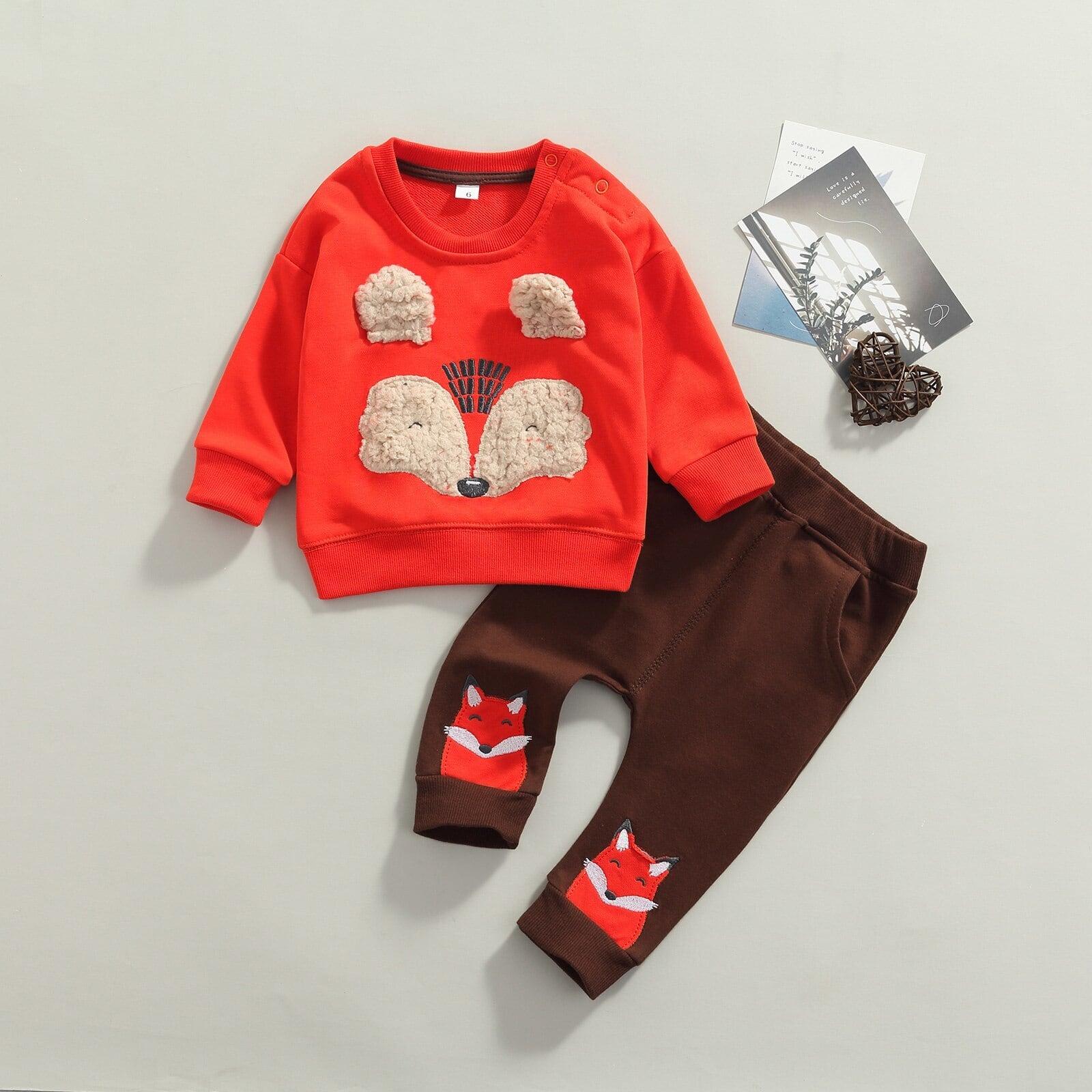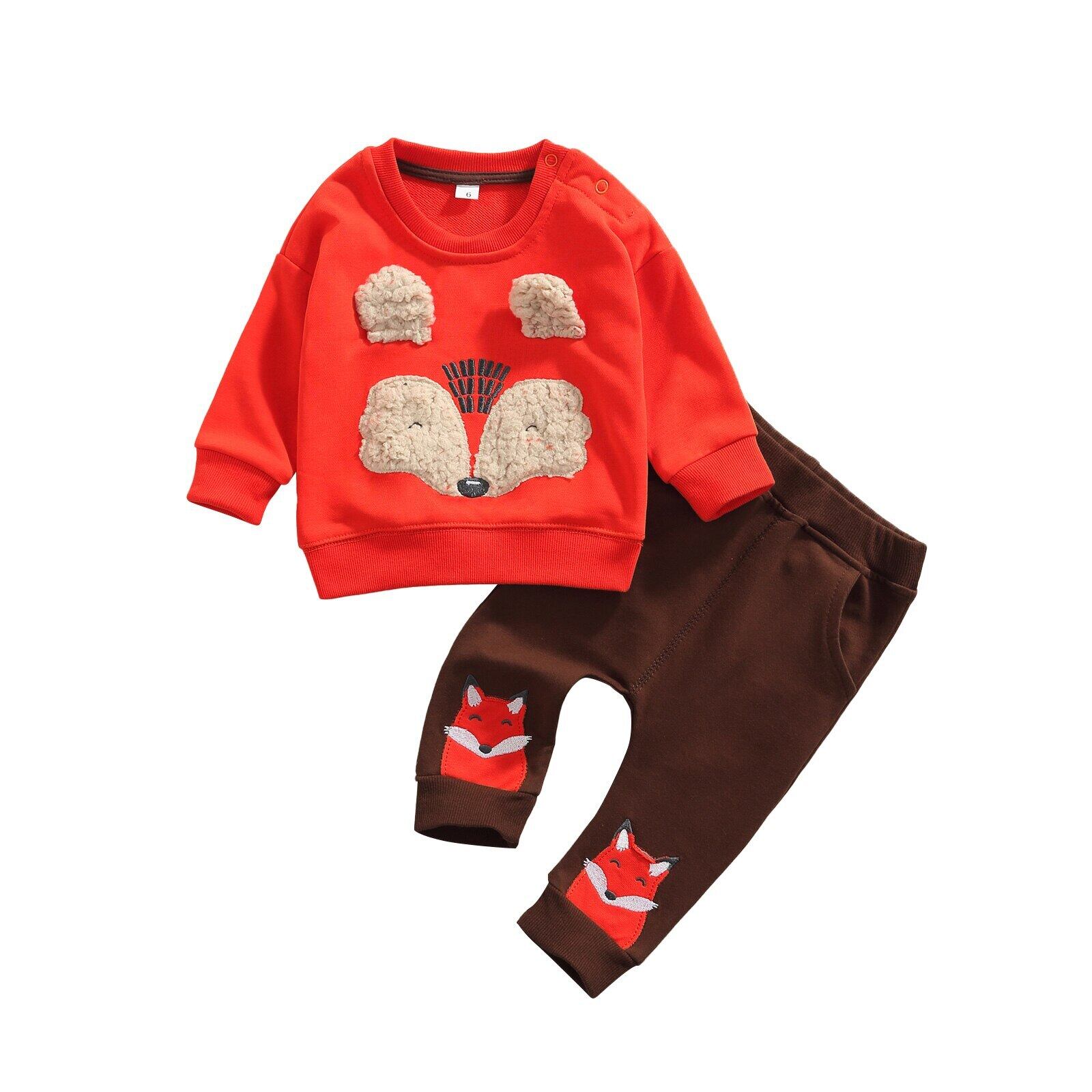 新作 Ma&Baby0-24M幼児幼児男の子服セット漫画フォックス衣装長袖スウェットシャツトップスパンツ秋DD88