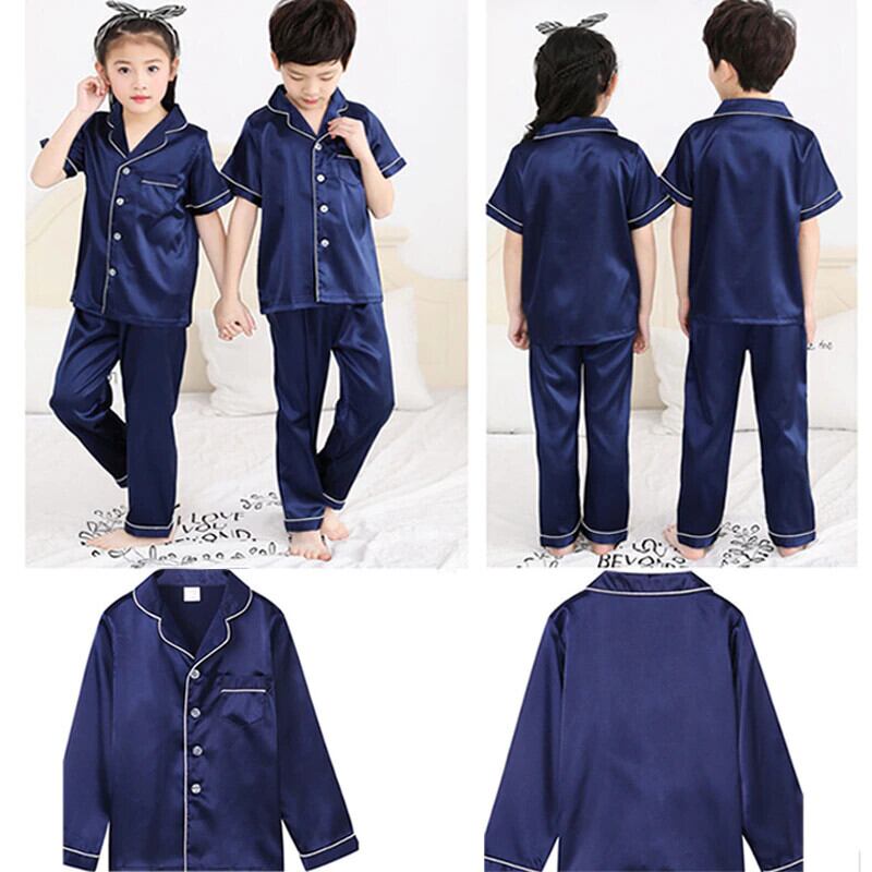 新作 ベビーボーイズガールズパジャマ服リトルガールズシルクパジャマ子供サマーセットサテンピジャマスーツ10歳