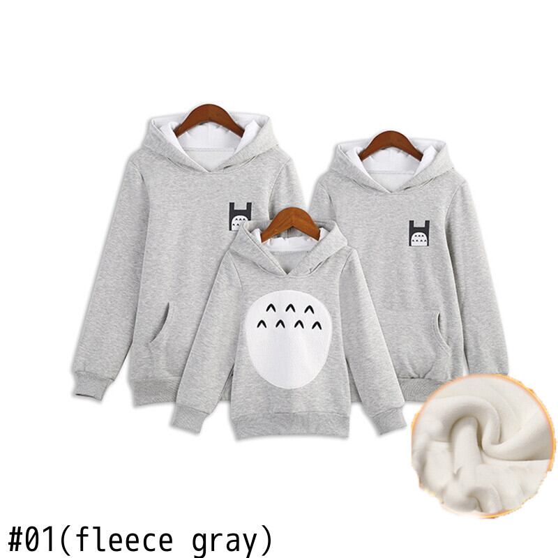 新作 冬の漫画のスウェットシャツ母娘マッチングトップス親子グレーフリースTシャツキッズお父さんママブラウス暖かい服装