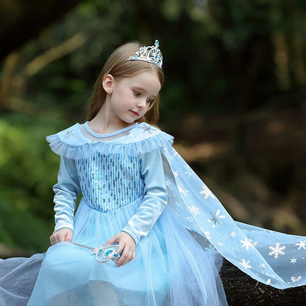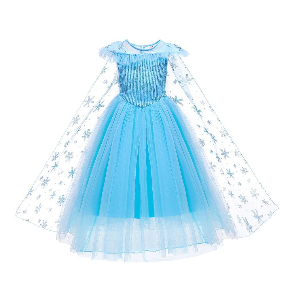 新作 雪の女王クリスマスガールズエルザドレスライトブルーチュールレーススパンコールドレスファンシーフェアリーエルザアンナカーニバルキッズイヤー