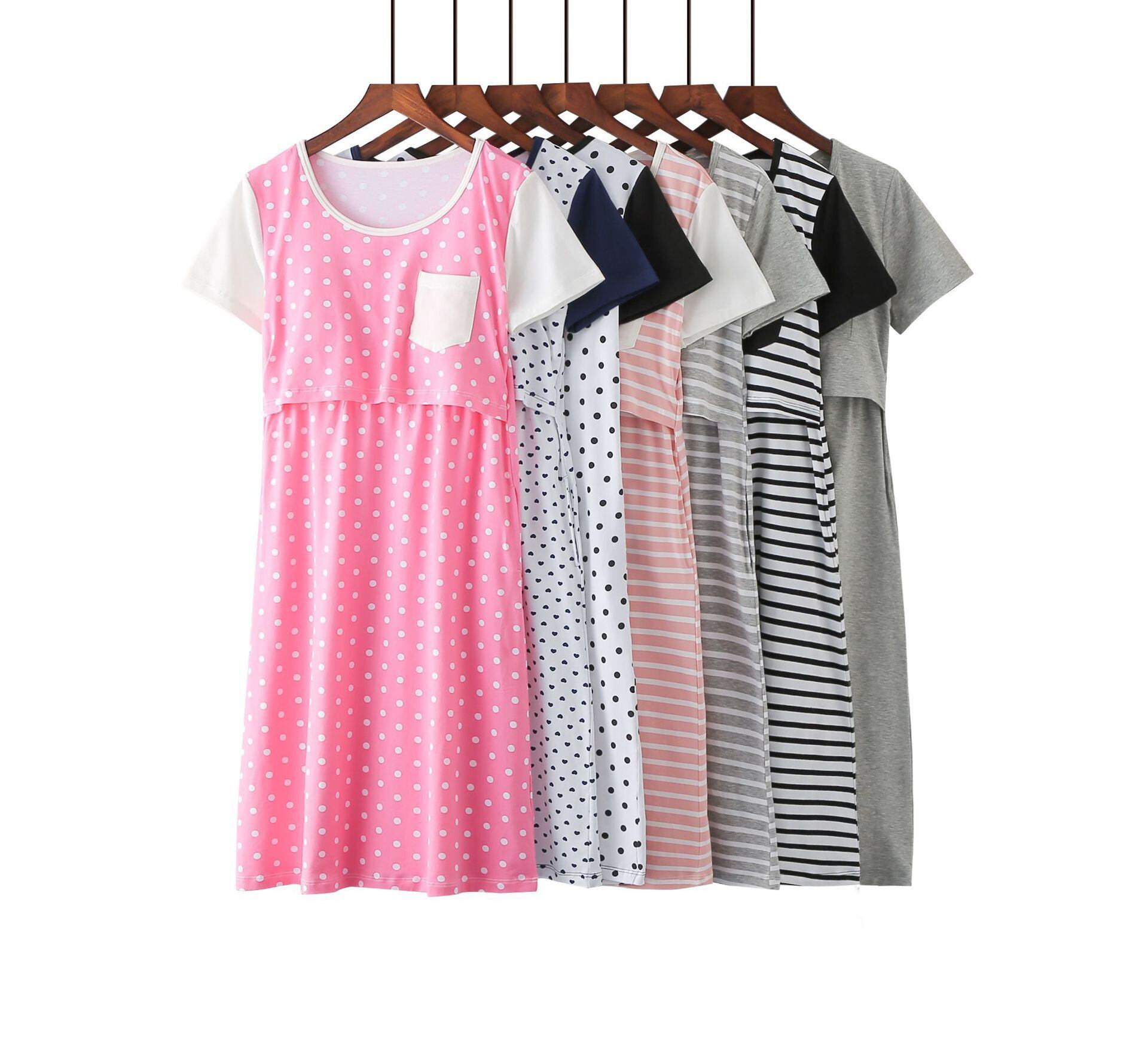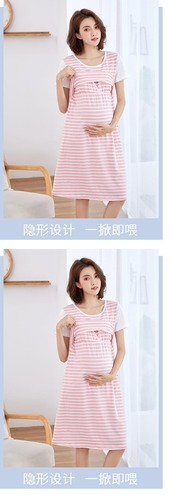 新作 レディースマタニティ服ママナーシングドレスマタニティドレスストライプコットントップスブラウスTシャツ授乳ベストトップホームウェア