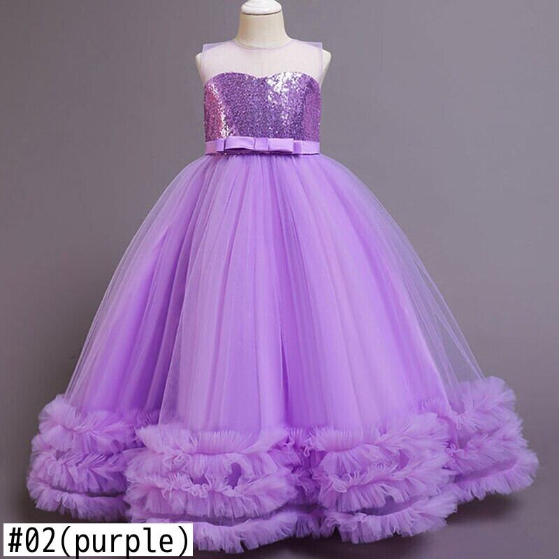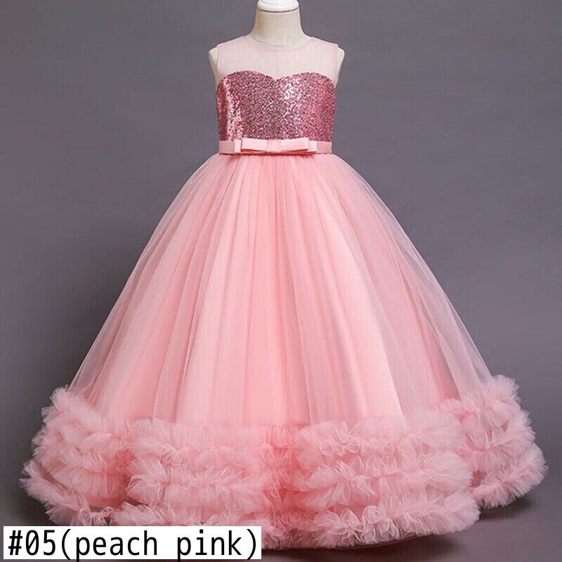 新作 -エンドガールドレススパンコールロングマル初聖体子供パーティーキッズドレスガールウェディングドレス