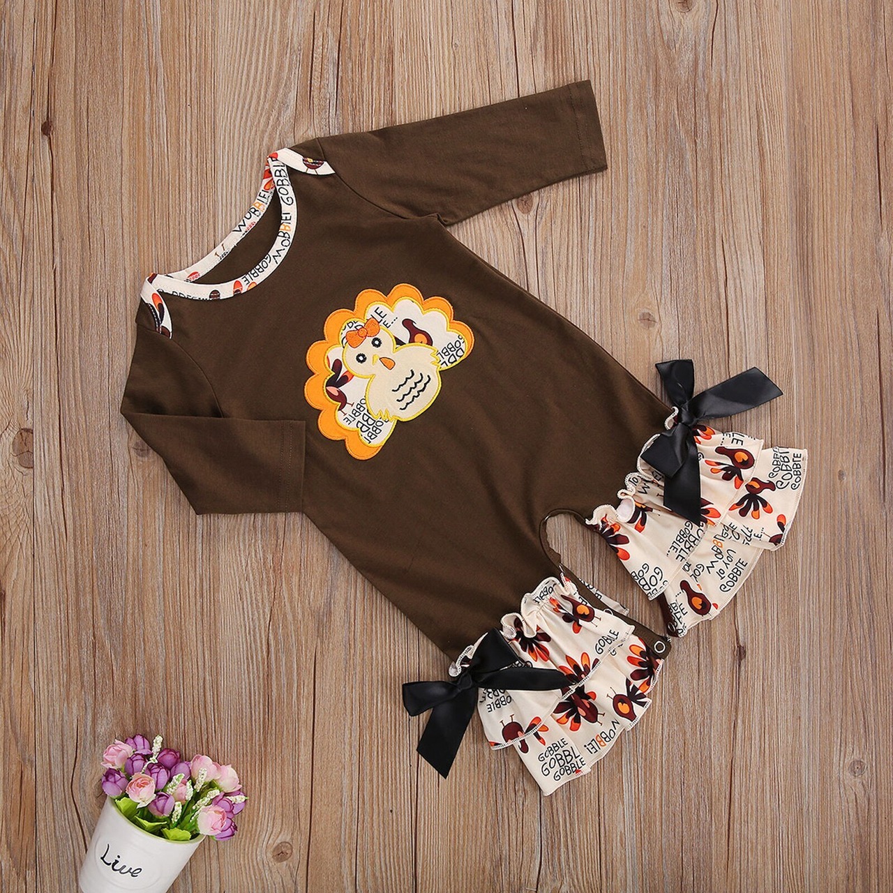 新作 Ma&Baby0-12M私の最初の感謝祭の赤ちゃんのジャンプスーツかわいい七面鳥のパターンフリルロンパース長袖服DD88