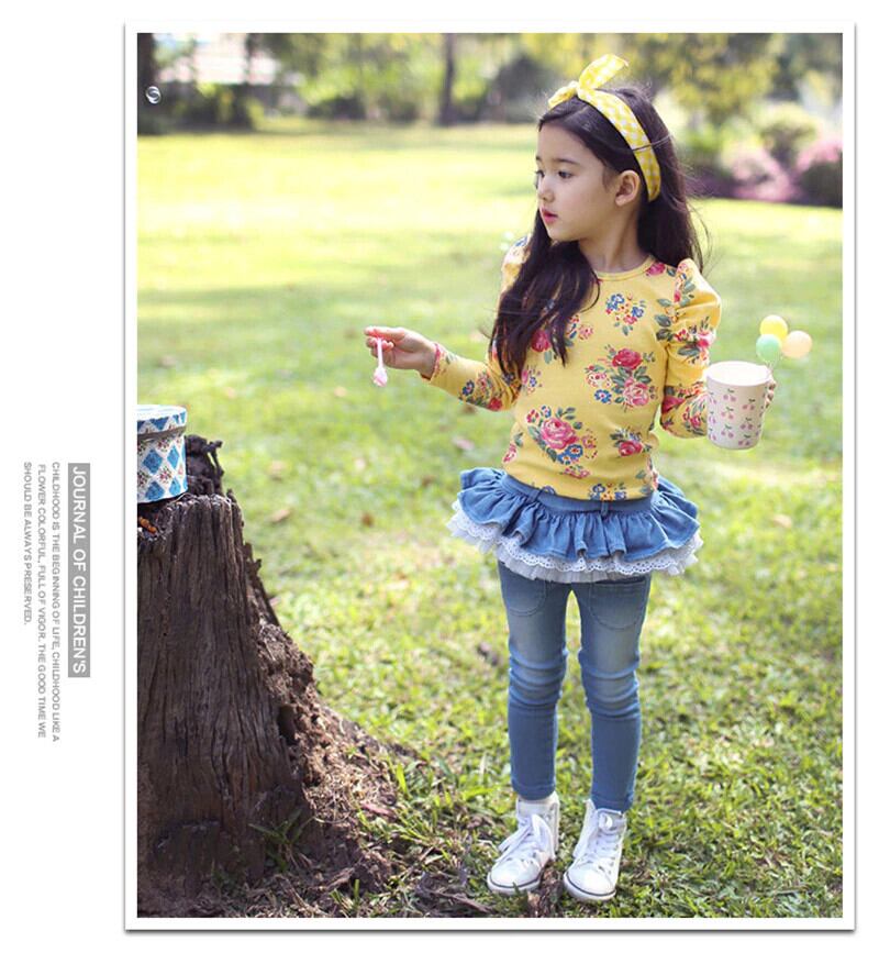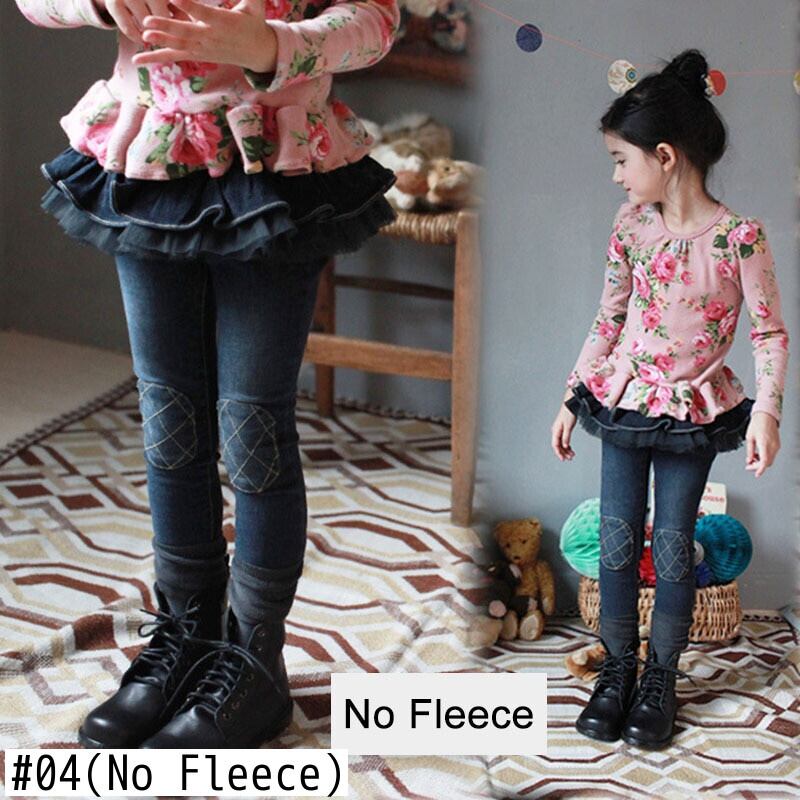 新作 スキニージーンズガールズウィンターチルドレンフリルスカートパンツガールズレギンスシックウォームフリースジーンズキッズデニムパンツ7/8年