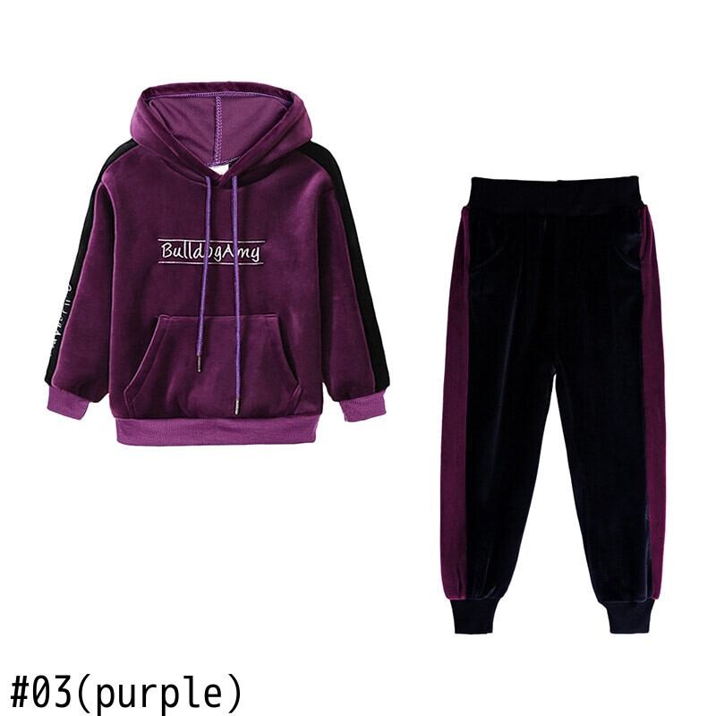 新作 子供秋冬女の子スポーツスーツ女の子フード付きスウェットシャツパンツ衣装ベロアトラックスーツ子供女の子服セット