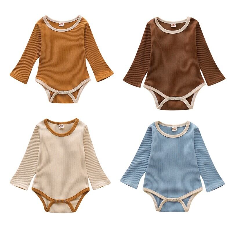 新作 生まれた赤ちゃん幼児ベビー服長袖キッズ幼児ベビーロンパースリブ付きコットンソリッドガールジャンプスーツ衣装
