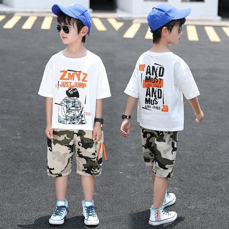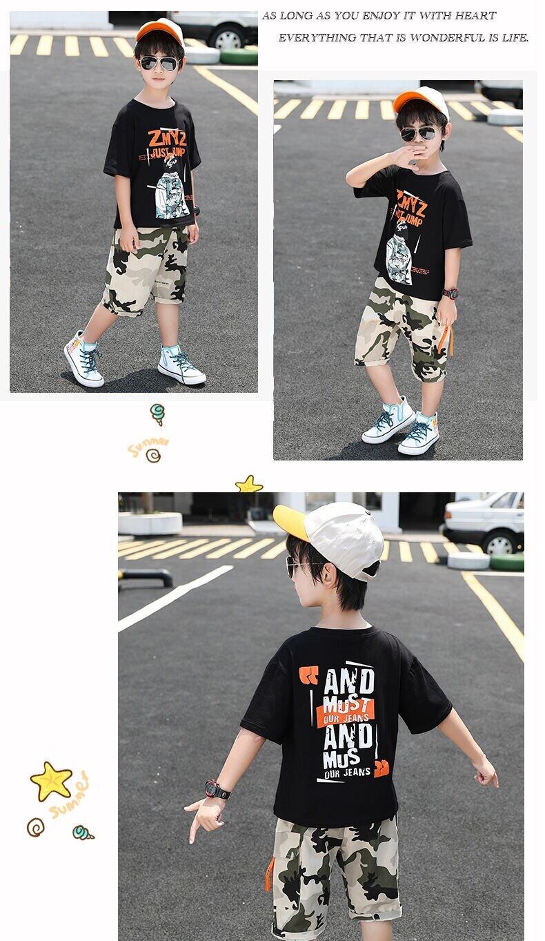 新作 子供男の子セット2021夏服子供10代男の子カモフラージュ変装トラックスーツスポーツウェアスポーツスーツ1012年