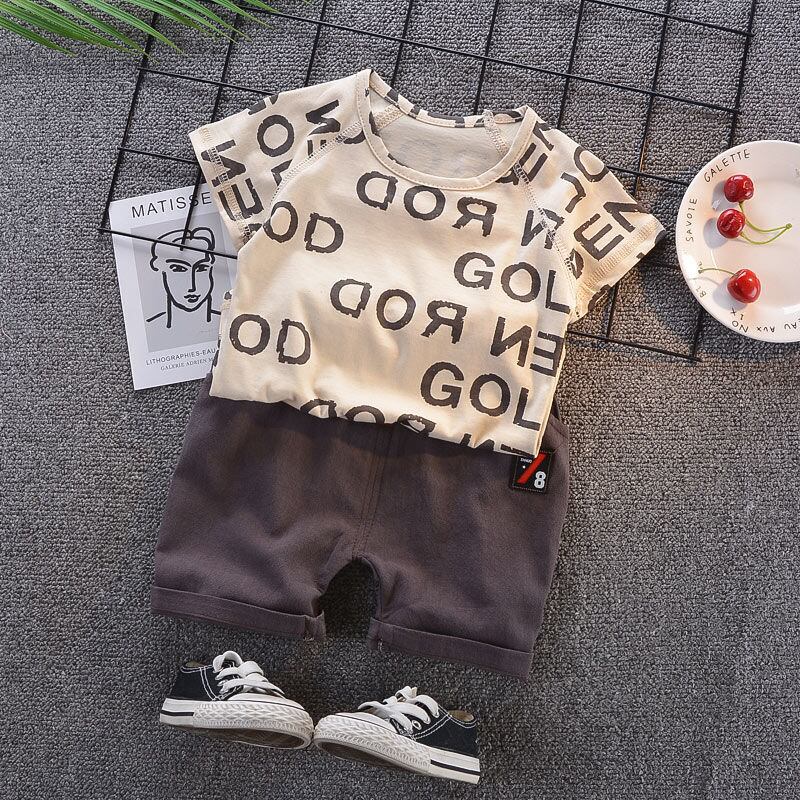 新作 ベビーボーイズセットサマー半袖トップスショーツコットンチルドレンキッズスポーツスーツ幼児メンズボーイズマル服セット