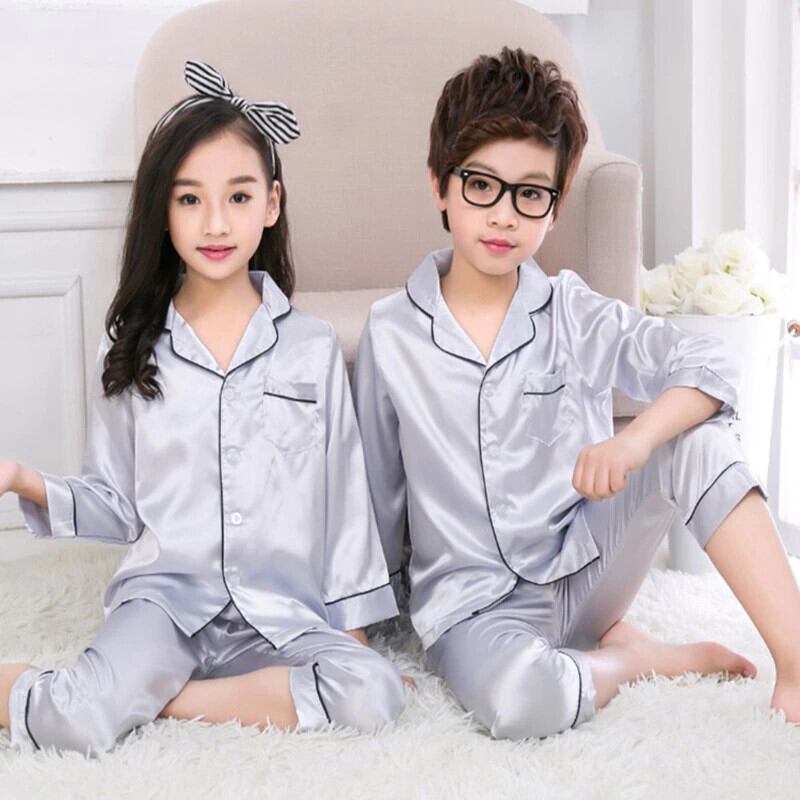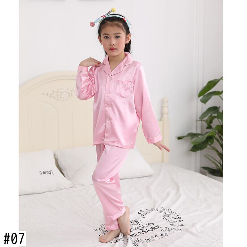 新作 長袖シルクパジャマガールズボーイズpjs秋のパジャマセットシルクサテンピジャマハーパーセブンパジャマパジャマスーツ10歳