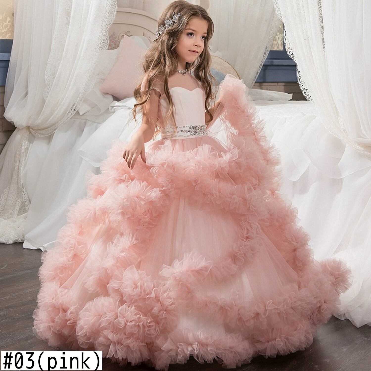 新作 レースフラワーガールドレスロングパーティードレスブライドメイド子供ウェディングドレスガールズ1012年
