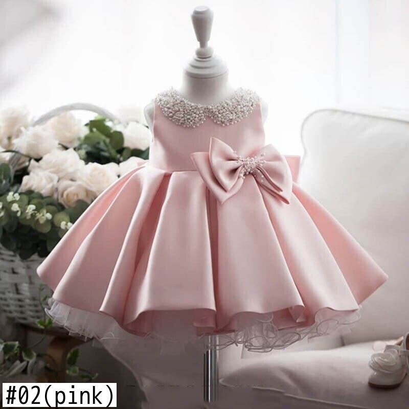 新作 -カスタムビーズの無地の女の子のウェディングドレスの赤ちゃんの女の子のキリスト教のドレスパーティープロムの子供たちの1年の赤ちゃんの女の子を終了します