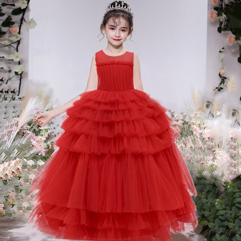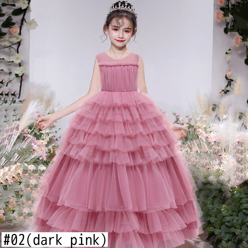 新作 ピンクの結婚式の誕生日ガウンレースツツ花の刺繡女の子子供キッズパーティー女の子の服
