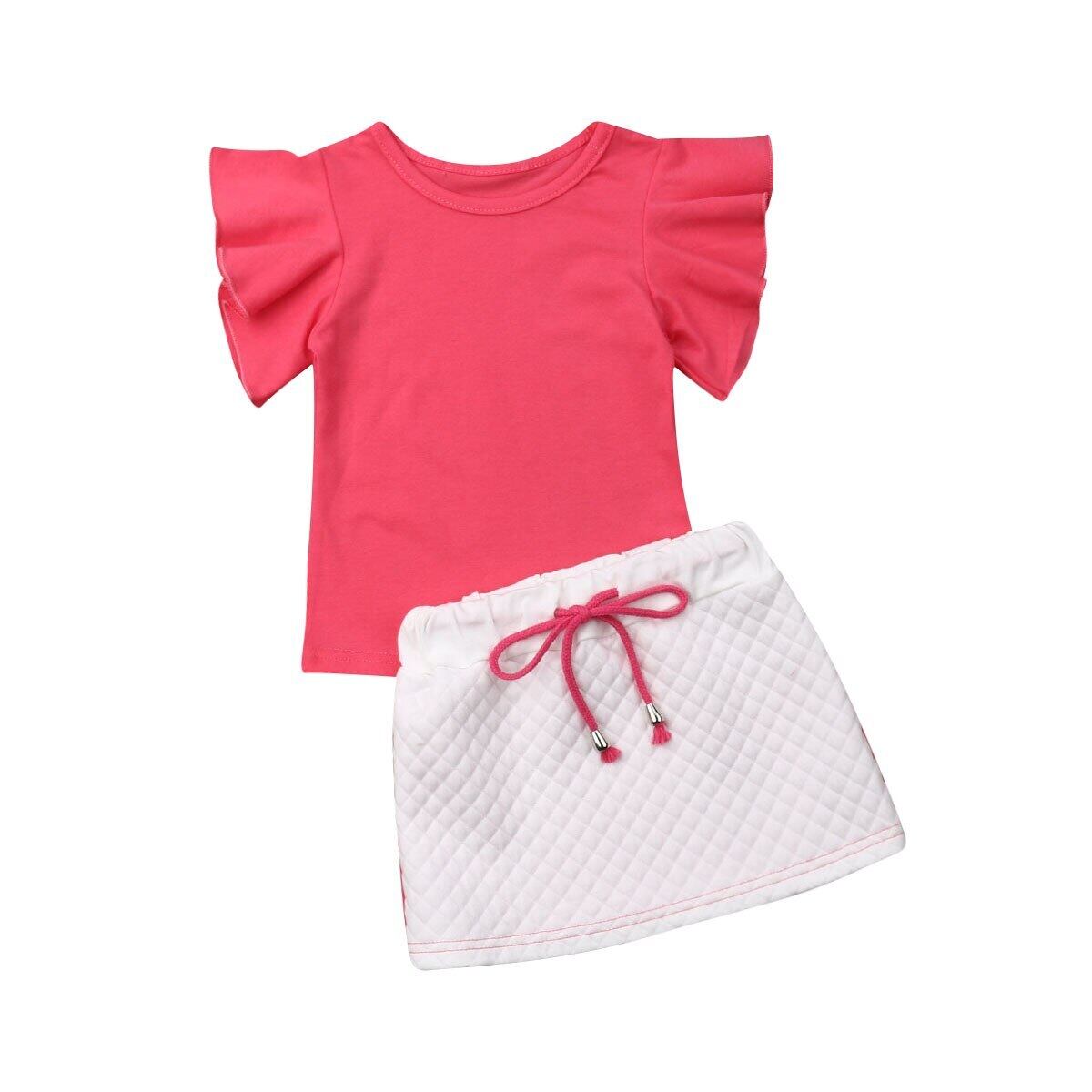 新作 幼児キッドガールズセットサマーフリルTシャツ+スカート衣装キッズs