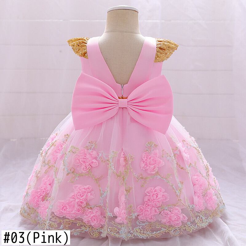 新作 2021フラワーキッズ服チャイルドバプテスマ1歳の誕生日ドレス女の赤ちゃんドレスレースバックレスパーティードレス